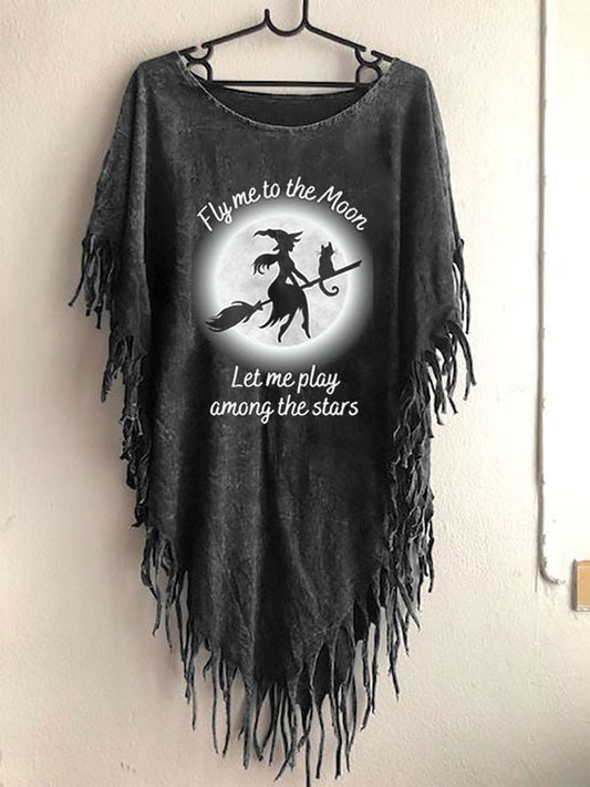 Women's Halloween Fly Me To The Moon Let Me Play Among The Stars Print Top